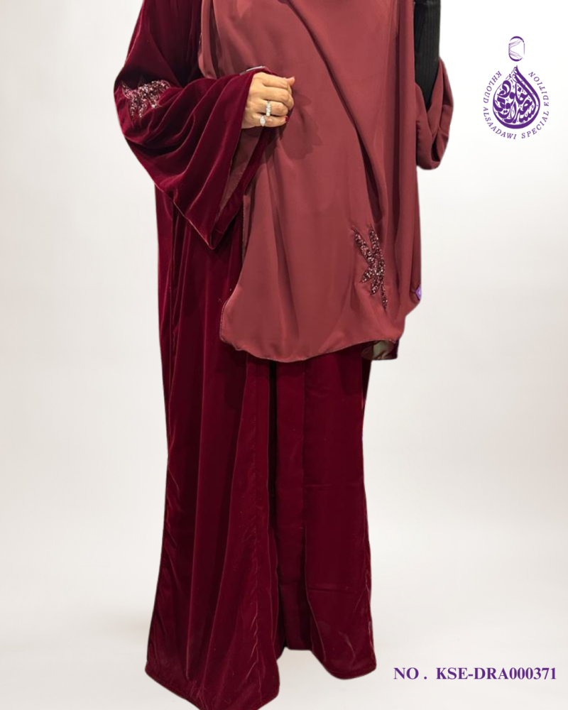 التصميم: هذه العباءة الأنيقة تتميز بأسلوب ملكي، مما يخلق ظلًا معقدًا يعكس الرقي.