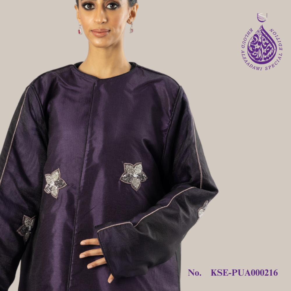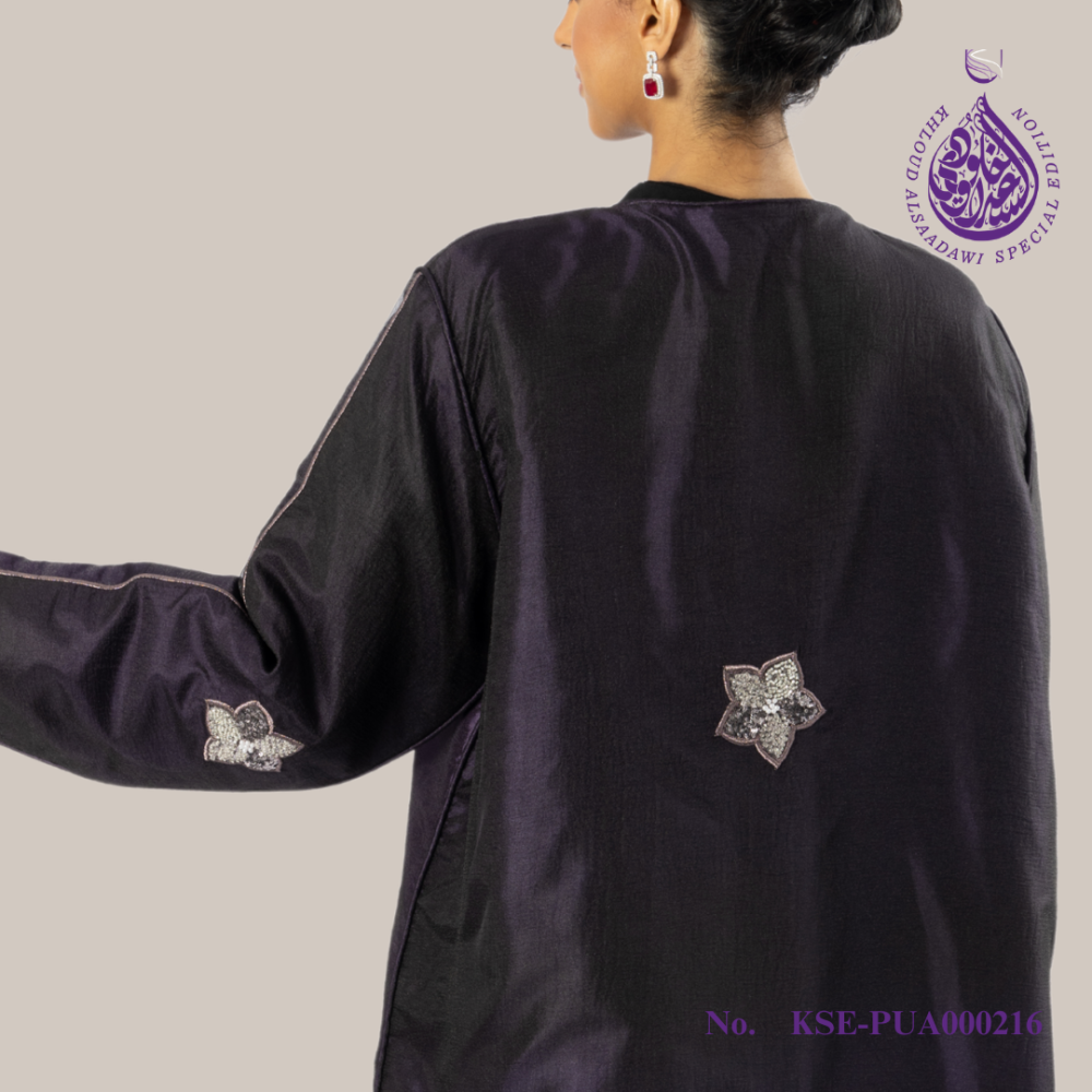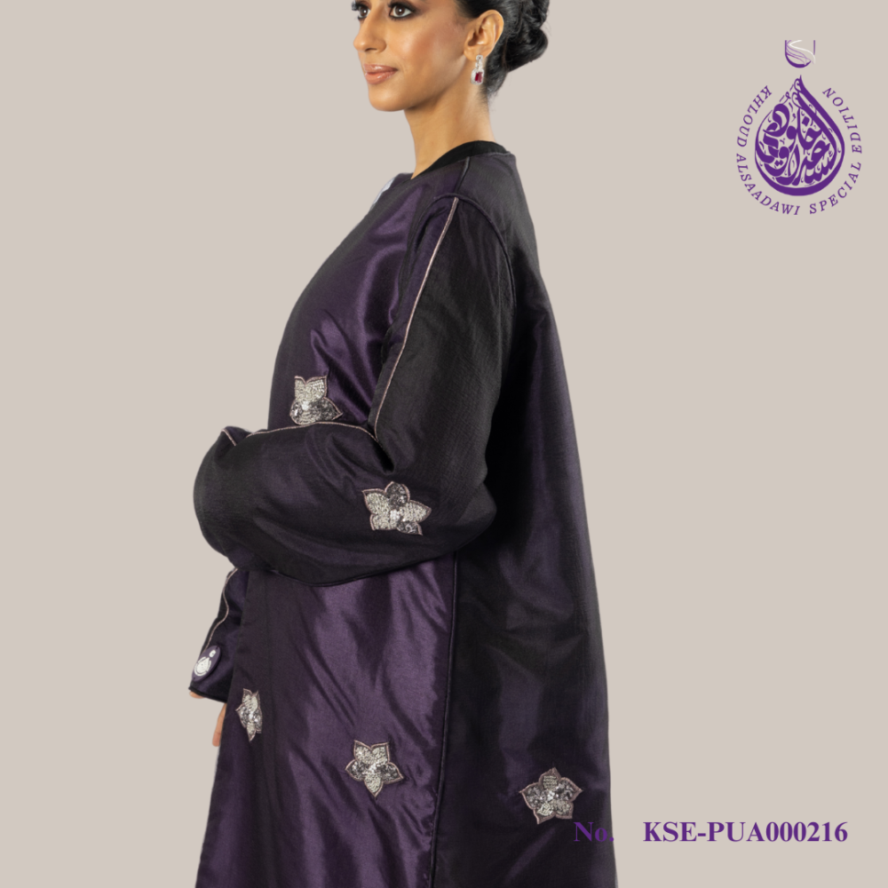 التصميم: تتميز هذه العباءة الأنيقة بتصميم كلاسيكي. العباءة بأكملها مطرزة بتطريز دقيق باللون الأرجواني.